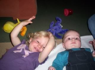 His Granddad taught him a new trick....... sticking out the tongue! Simon was doing it while he was pushing him in the pram and Evan started doing it back. It worked every time. Simon would do it and then Evan would do it. It was so funny. I bet Coralie is real pleased with Granddad for that one!